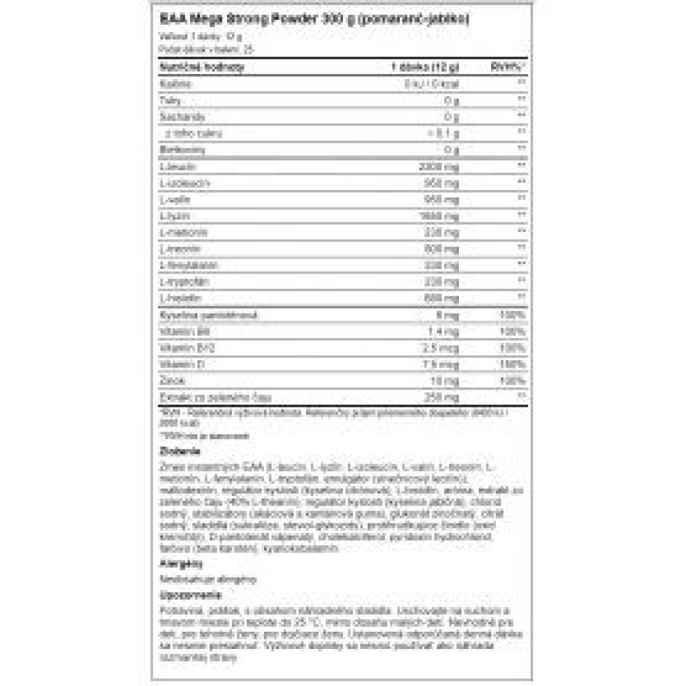 | Kemiskt namn | Essentiella aminosyror inkluderar leucin, isoleucin, valin, lysin, metionin, fenylalanin, treonin, tryptofan, histidin |